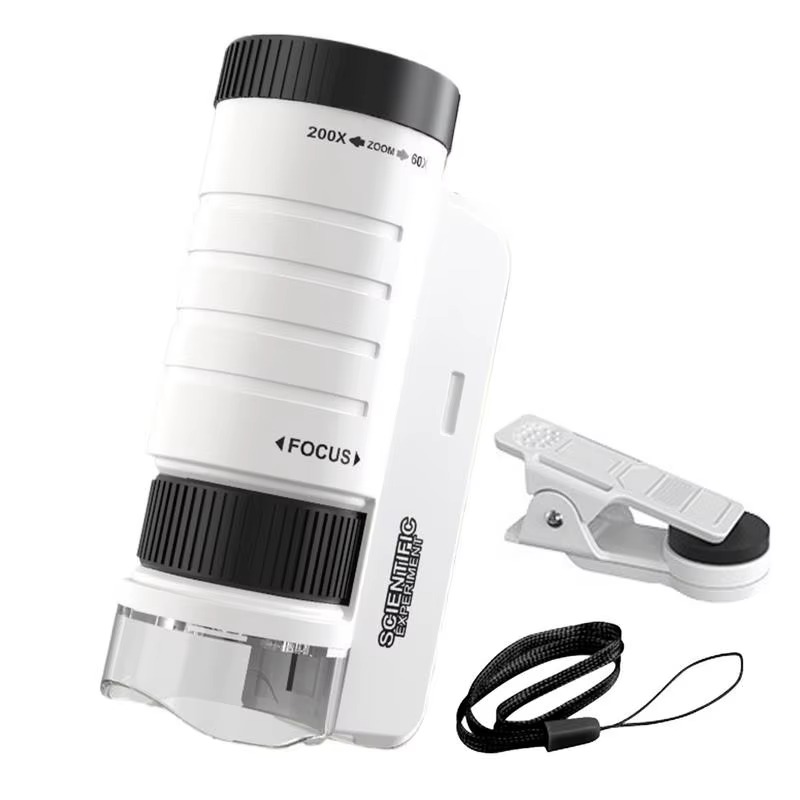 60X–120X handheld kids microscope with LED light and phone clip – a portable STEM learning tool for exploring the tiny world around us!